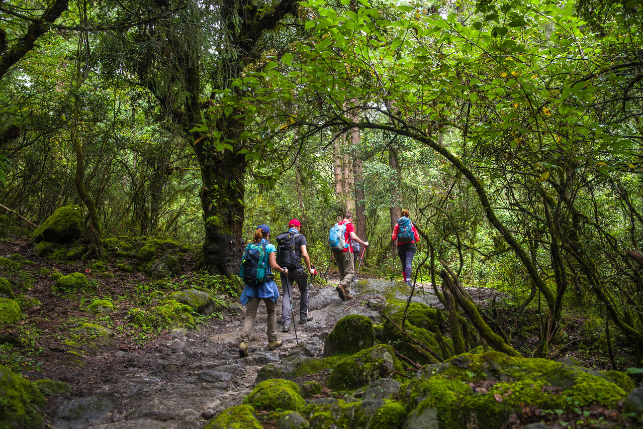 В закрытом Бутане не так много треков, где можно прогуляться. Однако пара таки найдется. Самый красочный, высокогорный и, будем откровенны, интересный — это Тропа Снежного Человека. Она проходит по хребту Донгкья на границе Бутана, Сиикима (Индия) и Тибета (КНР). Донгкья является частью Высоких Гималаев, именно тут возвышается священная Джомолхари (7315м). По легенде на ней обитает джомо (божественная защитница) Тибета и Бутана. А еще ее называют «невестой Канченджанги». Полный трек заканчивается в Чёрных Горах — внутреннем водоразделе Страны Счастья.