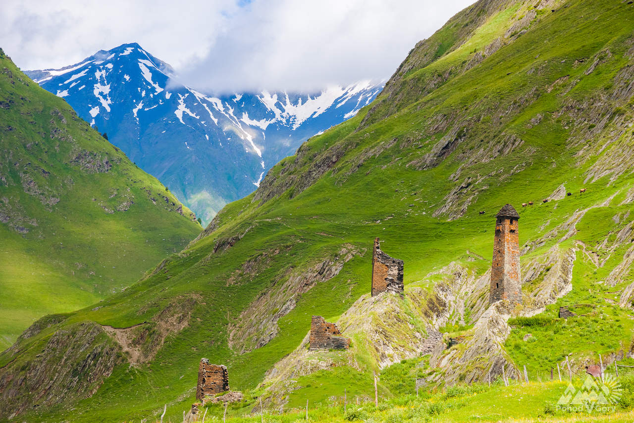 - древні високогірні башні Сванетії, в оточенні вершин і альпійських луків. Свани — свавільний та гордий народ, що зберіг багатство свого краю воістину первозданним;