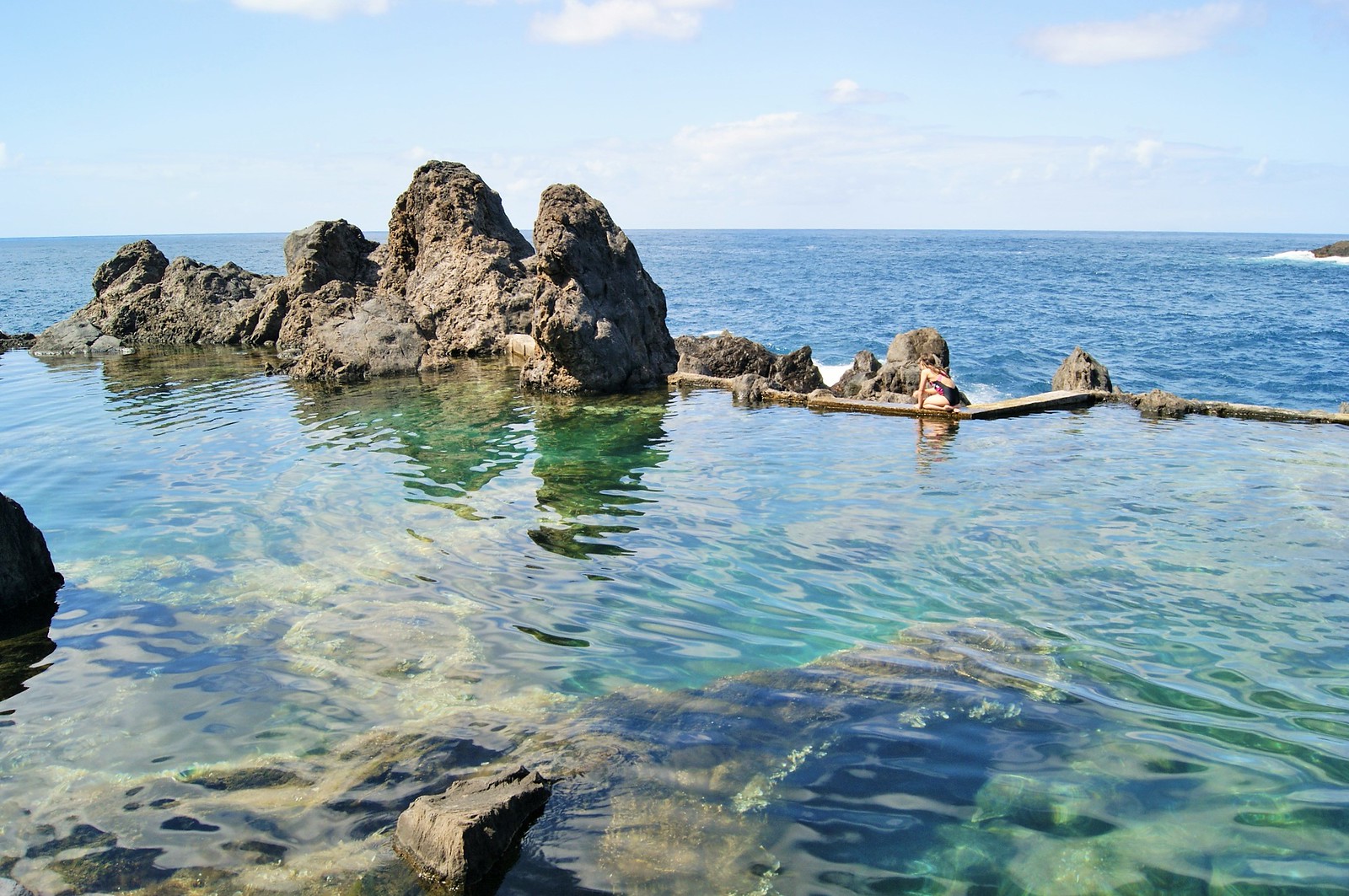 - Незважаючи на свій невеликий розмір, містечко Порту-Моніш є одним з найпопулярніших серед туристів. З будь-якої його точки тут відкриваються мальовничі пейзажі, але головне — є чудові лавові ванни в океанській бухті! Ми поніжимося в бірюзовій водичці, поки хвилі Атлантики будуть розбиватися об краї наших басейнів…