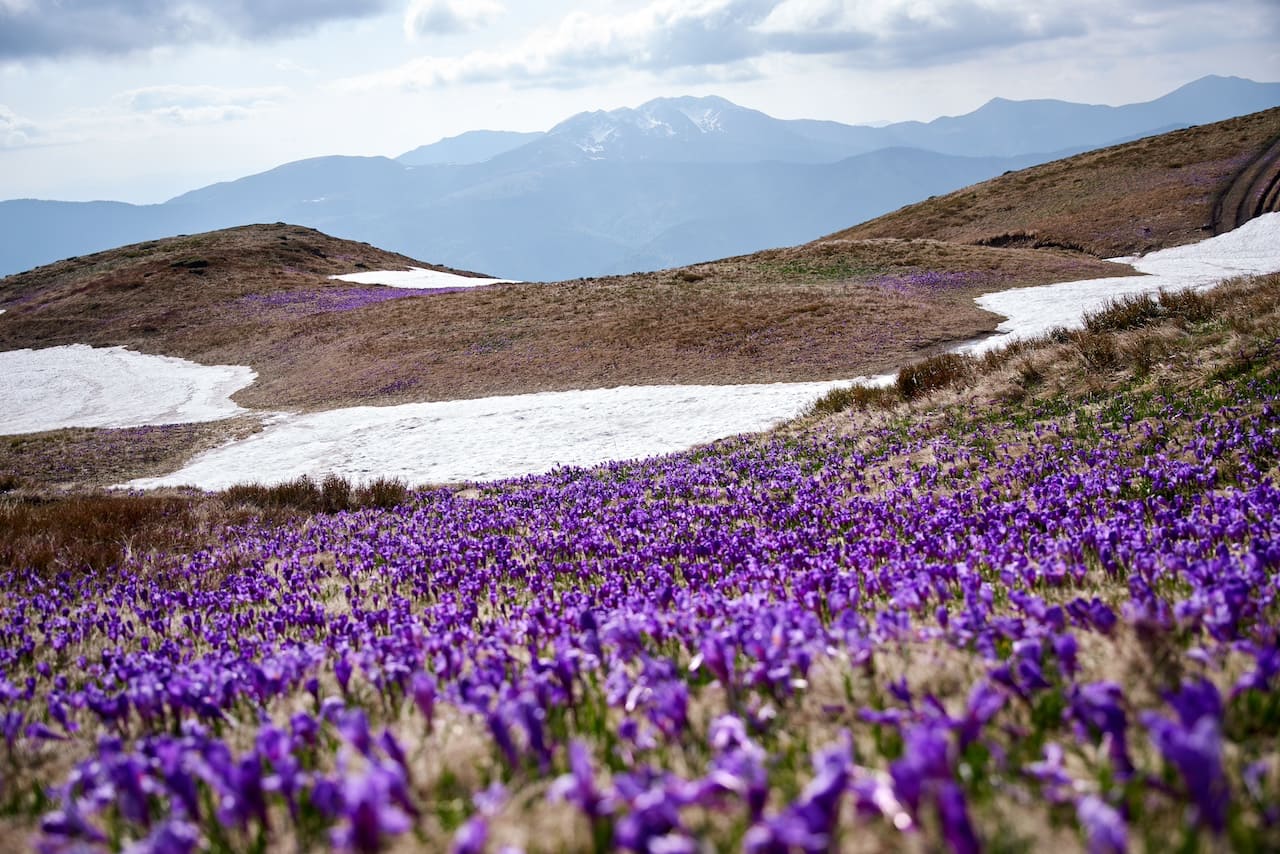 Кожного року пік цвітіння відбувається в різний час, тож потрібно слідкувати за станом сніжного покриву в горах. Як тільки сходить сніг і прогрівається земля – одразу зʼявляються перші крокуси. По мірі танення снігу – пурпурові килими крокусів піднімаються вверх, по гірських схилах.