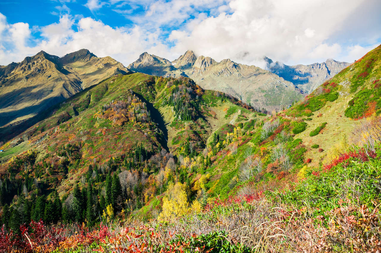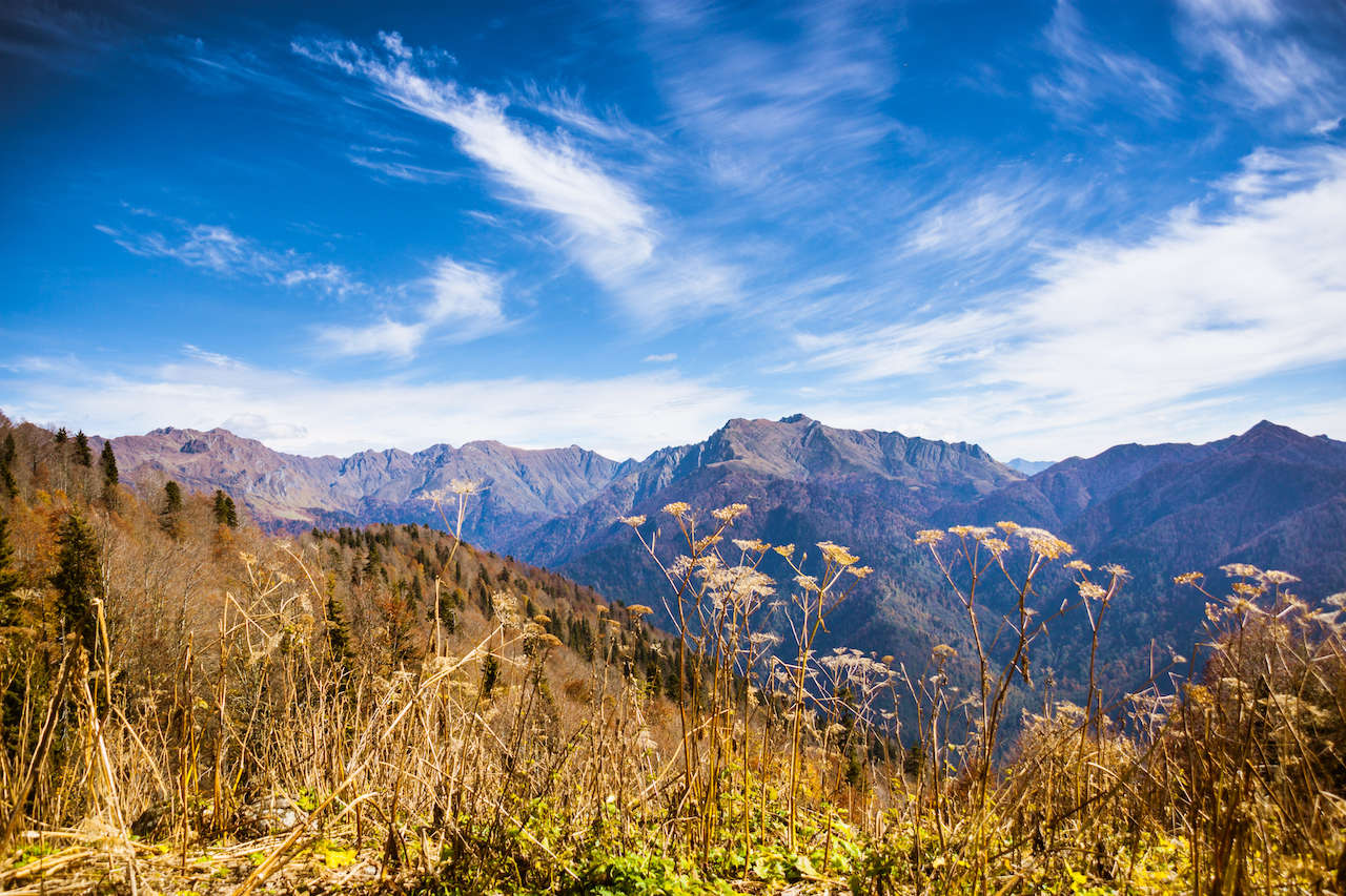 Осень по праву считается золотой порой для путешествий в тех краях — море теплое, в городах не жарко, на тропах снега нет и как раз созревают многочисленные плоды богатого сельского хозяйства. В начале сентября погода в горах хорошая и теплая, грузины считают, что еще лето. Во второй половины месяца ночью на высокогорье начинаются заморозки, формируются стабильные дождевые фронты, которые выше 2500 м превращаются в снежные. Именно из-за снегопадов сезон пешего туризма закрывается в середине сентября, хотя на пляжах еще бархатный сезон. В ноябре в горы идти не стоит, погода очень непредсказуема, часто плохая — в горах дожди и снегопады, перевалы засыпает снегом, хотя в приморских долинах еще очень тепло.