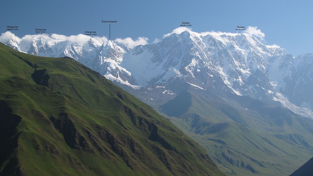 Конечно же, нас, пеших туристов, манит высота, поэтому наиболее посещаемый регион в горах Грузии — Большой Кавказ в его Центральной части. Походы здесь дают возможность увидеть вершины-легенды: Казбек (5033м), Ушбу (4700м), массив Шхельда (4320м) и, конечно же, Стену Безенги: Шхару (5193м, Вершину Грузии), Джангитау, или Джанга (5058м, пятая на Кавказе и вторая в Грузии), Коштантау (одна из самых опасных и труднодоступных в регионе), Шота Руствели (4859м). Из Сванского Хребта на горизонте Вы увидите Дыхтау (5204,7м) — вторую после Эльбруса!