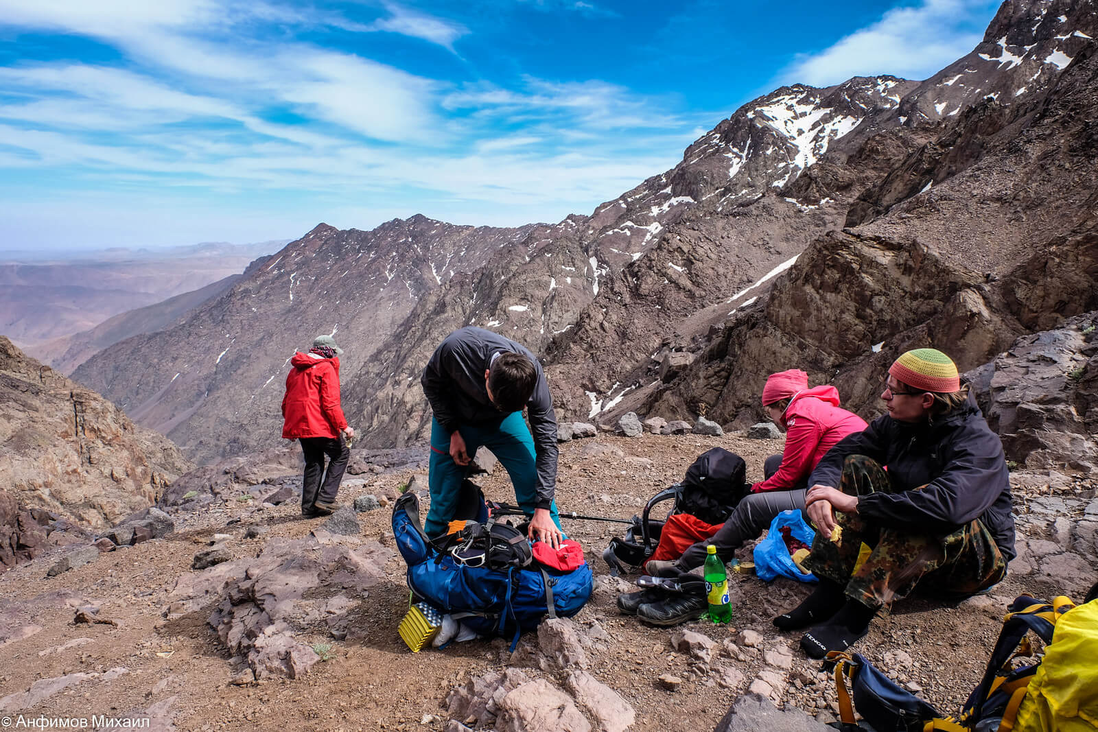 Если вы решили покорять вершины Большого Атласа, это вполне можно сделать в любой сезон. Марокко, конечно, африканская страна, но в горах зима снежная, холодная и суровая. Нужно запастись теплым спальником, хорошей непромокаемой обувью и теплой одеждой, ведь ночью на высоте 2000м бывает -5°С, а выше еще холоднее. Бахилы тоже будут очень кстати. Для похода в межсезонье подойдет демисезонный спальник, важно не забыть солнцезащитный крем и дополнительный слой флиса к стандартной трехслойной экипировке. В летний поход в Марокко обязательно взять солнцезащитный и увлажняющий крем — горячие ветра пустыни очень сушат кожу. Важно не забыть очки от солнца и песка. В марокканские горы всегда нужно брать удобную и проверенную обувь — высокие трекинговые ботинки с хорошей фиксацией голенестопа, ведь склоны здесь скалистые и каменистые, местами очень крутые.