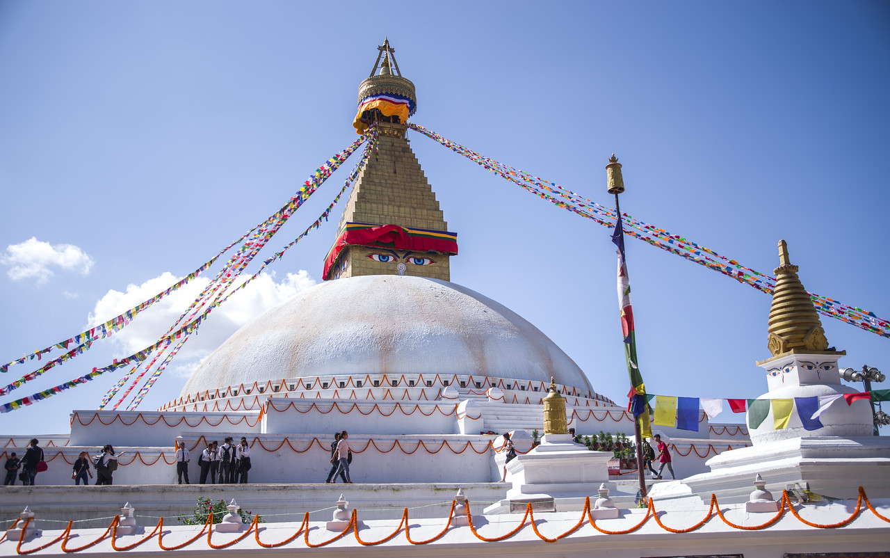 - Столица — Катманду, космополитичный город с более чем миллионным населением и огромным количеством туристов, стремящихся в Гималаи. Шум, суета и множество людей может повергнуть Вас в некое замешательство сразу на выходе из аэропорта. Но сложно найти более живой город в мире. В каждом трекинге в Непале наш клуб отводит 1-2 дня на экскурсии в Катманду. Здесь мы посещаем самые известные, важные и красивые достопримечательности столицы: ступы Боднатх и Сваямбунатх, Королевский дворец, туристический район Тамель и многое другое.