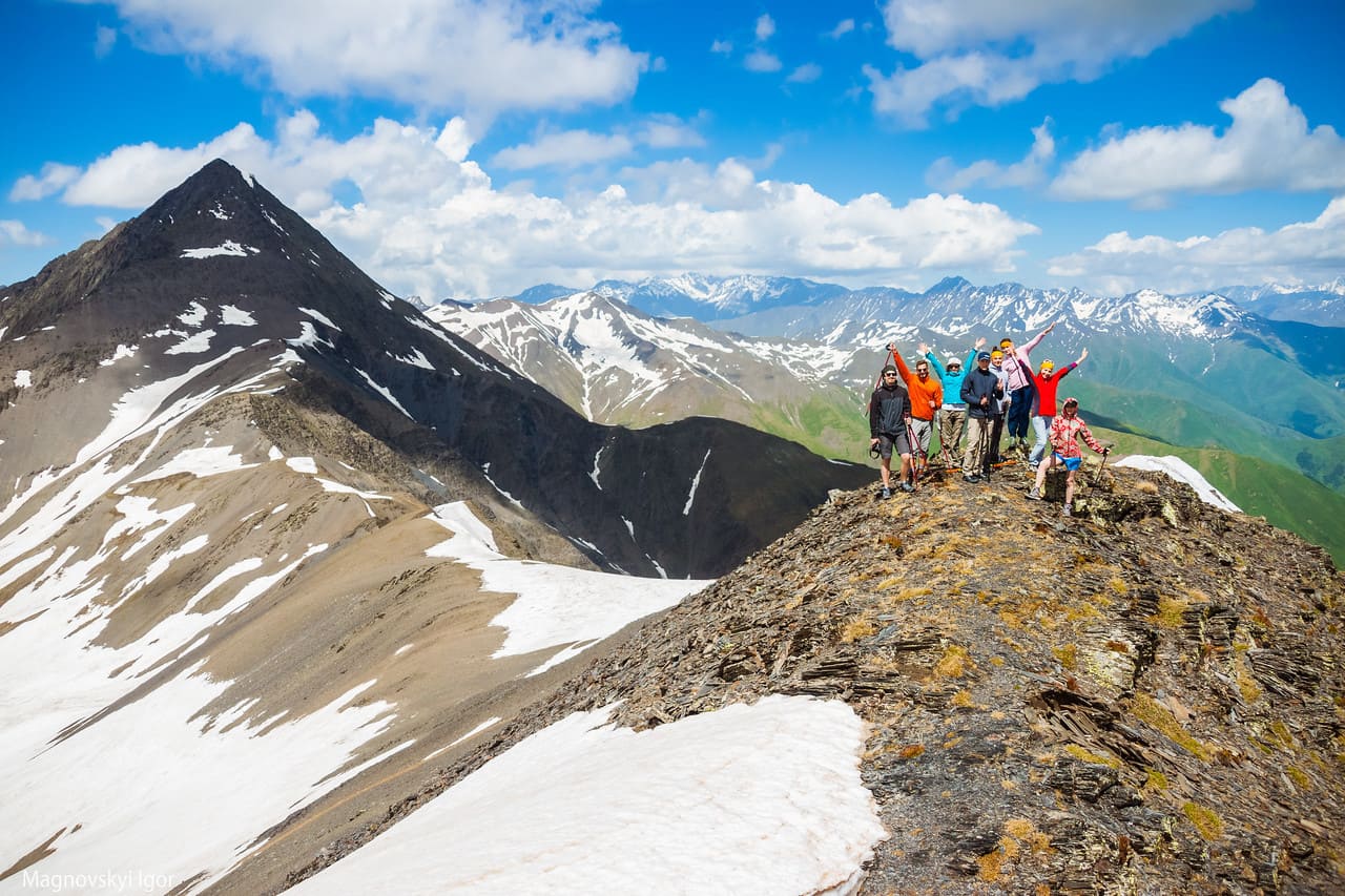 Несомненно, один из любимейших наших маршрутов, когда-то разведанный инструктороми турклуба Pohod V Gory. Тут и бескрайние альпийские луга, и скалы Чаухи, и целые каменные города из тушетинских башен! Трек дикий, почти без туристов (пока что). Начинается от подножия Казбека, а заканчивается в Кахетинских винодельнях))) Много высотных ночевок, озер, джиппинг по крутым серпантинам, конные экскурсии и вкусная еда. Погода в Тушети всегда лучше, чем в остальных регионах Грузии.