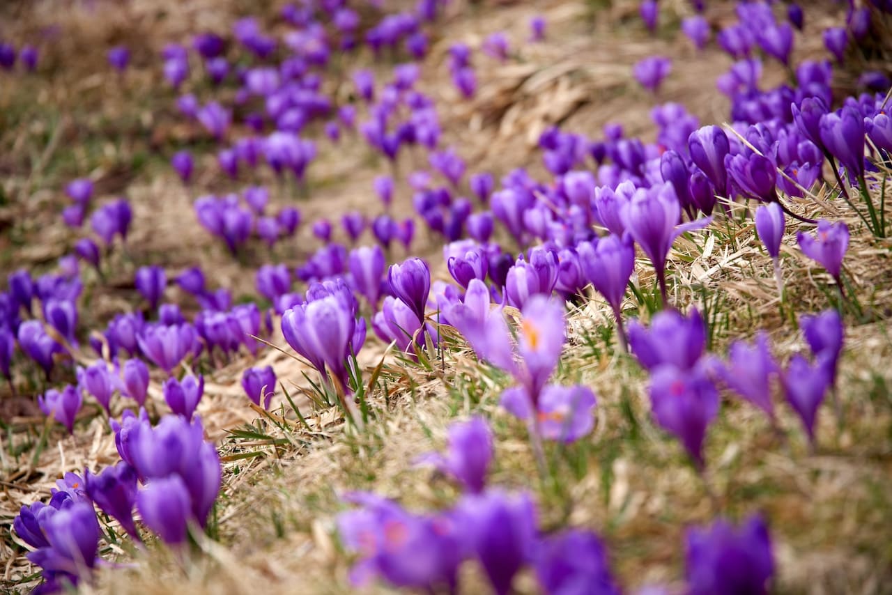 Быстрее крокусы появляются на южных хребтах Карпат, так как они более теплые. Поэтому сначала их стоит искать в долинах Мармароських гор или в районе Колочавы – то есть на южном мегасклоне Карпат. Немного позже они появляются на Черногорье и Свидовце. Самые поздние – в Татрах на севере. Подробнее читайте в статье.