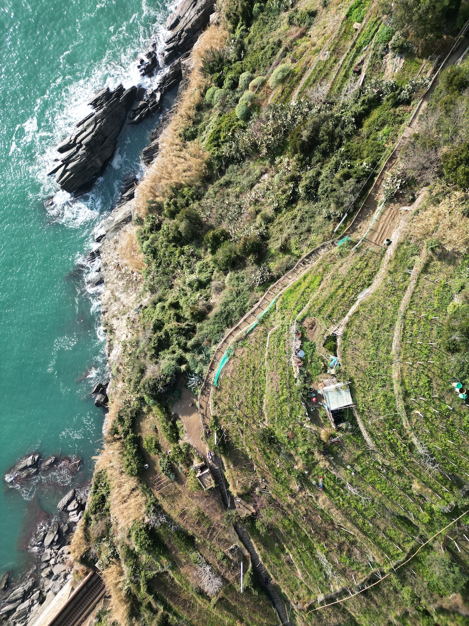 Дальше путь становится более «горным» — мы набираем высоту и поднимаемся в сторону Сан-Бернардини. Это небольшое село на гребне гор, откуда открывается потрясающий вид сразу на два направления: побережье Чинкве-Терре с одной стороны и горные склоны — с другой. Это настоящее место силы, куда туристы доходят реже, поэтому атмосфера здесь спокойная и почти аутентичная.
