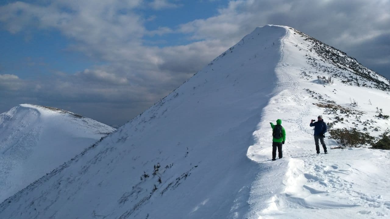 Инструктор встречает туристов на ж/д вокзале в Воловце, где стартует наш зимний поход по Горганам. Трансфер увозит нас в национальный парк «Синевир», известный на всю страну красотой и богатством природы. Выезжаем на Синевирский перевал, высота почти 1000 метров. Уже отсюда можно насладиться видами горных хребтов и долин. Каждую весну на этом перевале проводят уникальный фестиваль «Проводы отар на полонины». Оставляем вещи в бусе (они поедут прямиком в отель) и начинаем первое в нашем зимнем походе восхождение — на вершину горы Каменка, 1578 м. Тропа уводит нас в заколдованный лес, усыпанный хрустящим снегом. Идти радостно и приятно, хотя местами тяжело — получится отличная разминка перед завтрашней вершиной. По пути будет несколько полонин, с которых откроется живописная панорама. Нашу гору видно как на ладони, а вокруг еще десятки островерхих горганских пиков тянутся в зимнее небо. Чем мы выше, тем сложней идти, приходится преодолевать снежные заносы и фирновые поля. Наградой нам станет потрясающий вид с Каменки и чувство свободы, которое возможно только в горах. Спускаемся на перевал, откуда уезжаем в отель греться, ужинать и отдыхать.