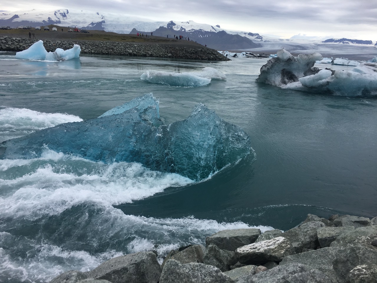 Поход в Исландию в разгаре, садимся в общественный транспорт и едем к Ледниковой лагуне (Jökulsárlón). Огромный ледник сползает здесь прямо в озеро. В результате климатических изменений язык ледника постепенно уменьшался и отступал от берега, образуя озеро с талой водой. Сейчас площадь лагуны достигает нескольких десятков квадратных километров и продолжает расти. Глыбы тысячелетнего льда фантасмагорических форм и самых разных размеров откалываются от края ледника и дрейфуют по лагуне, уплывая через пролив прямо в океан. Не забудьте запечатлеть это великолепие на своих фотографиях! Конечно, они не смогут передать все впечатления от поразительных красок и необъятных просторов этого места, но все же определенно не стоит упускать шанс создать свой фотошедевр. Мы поставим лагерь на самом берегу лагуны.