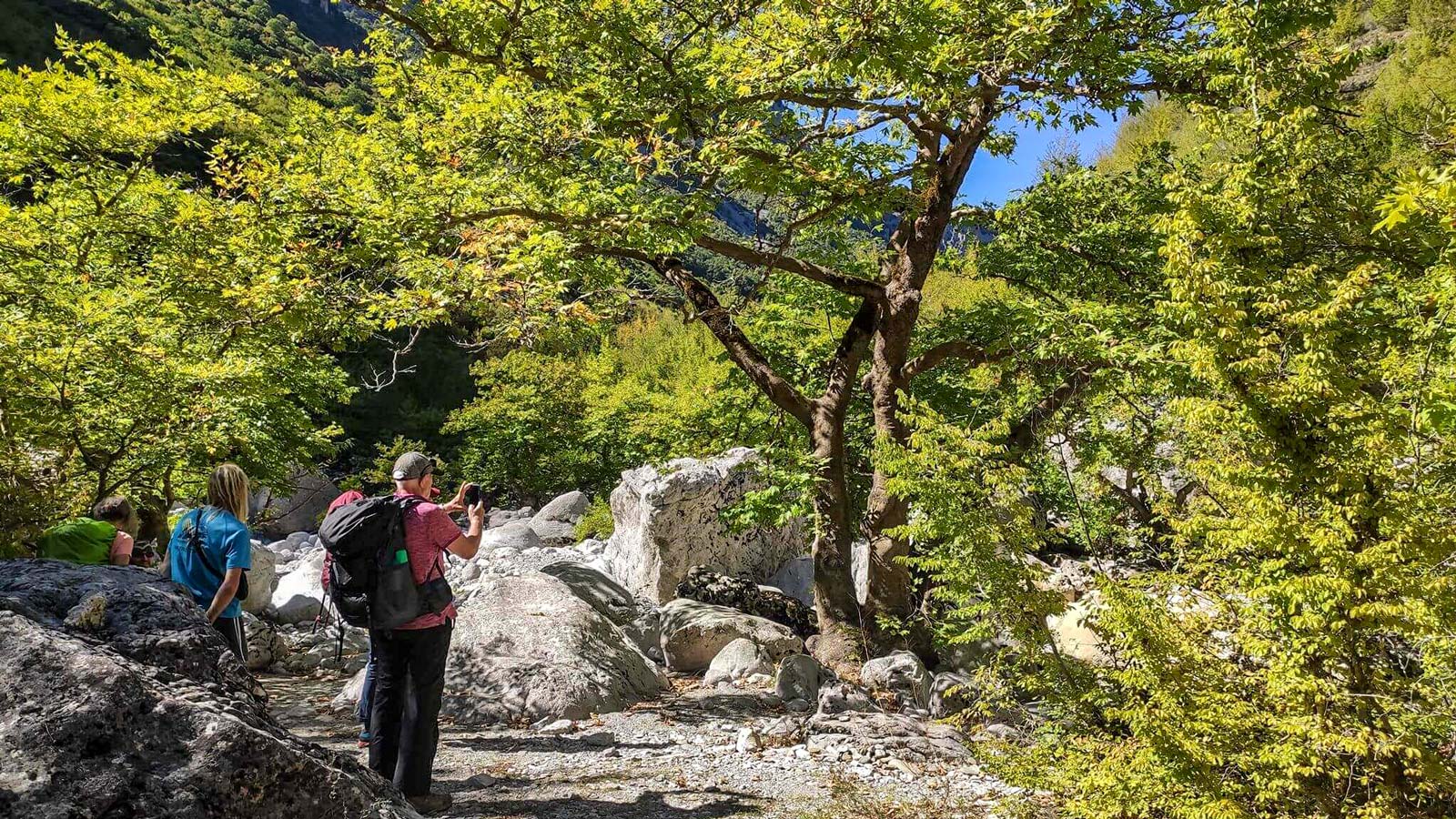 Тропа пересекает старый каменный мост Калогерико, признанный одним из самых красивых на Балканах. Идем под куполом свежих лесов, чуть тронутых первым заревом осени. Проходим десятки каменных арочных мостов: Кир Нуцу, Мисиу, Милу… Заходим в Кипу, Кукулу и Дилофо, где осмотрим деревенские площади, пообщаемся с местными, запечатлеем фотогеничные дворики и отведаем аутентичную кухню. Вечером возвратимся в наш гестхаус.