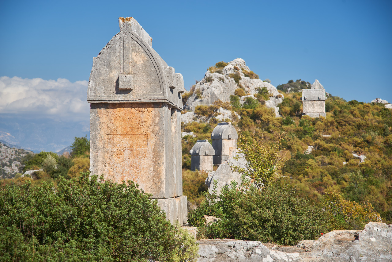 Починаємо активну частину нашого походу зимовою Лікійською стежкою. Відразу за містом починаються Таврійські гори, куди ми і прямуємо. Піднімаємося на перевал, за яким чекає сюрприз — руїни стародавнього Белоса і красивий вид на прибережний Демре. Поставимо намети прямо серед античних саркофагів і колон Белоса, а після заходу сонця будемо милуватися вогнями нічного міста. Лікійці створювали унікальні саркофаги, оскільки вірили, що чим вище похована людина, тим простіше душі дістатися до неба. По висоті саркофага можна зрозуміти, наскільки багатим був небіжчик, адже такі гробниці були недешевими і тільки знать могла собі їх дозволити. Біля кожного лікійського поселення є некрополь («Місто мертвих»), а найважливіше панство покоїться в склепах розміром з дім або в скельних гробницях.