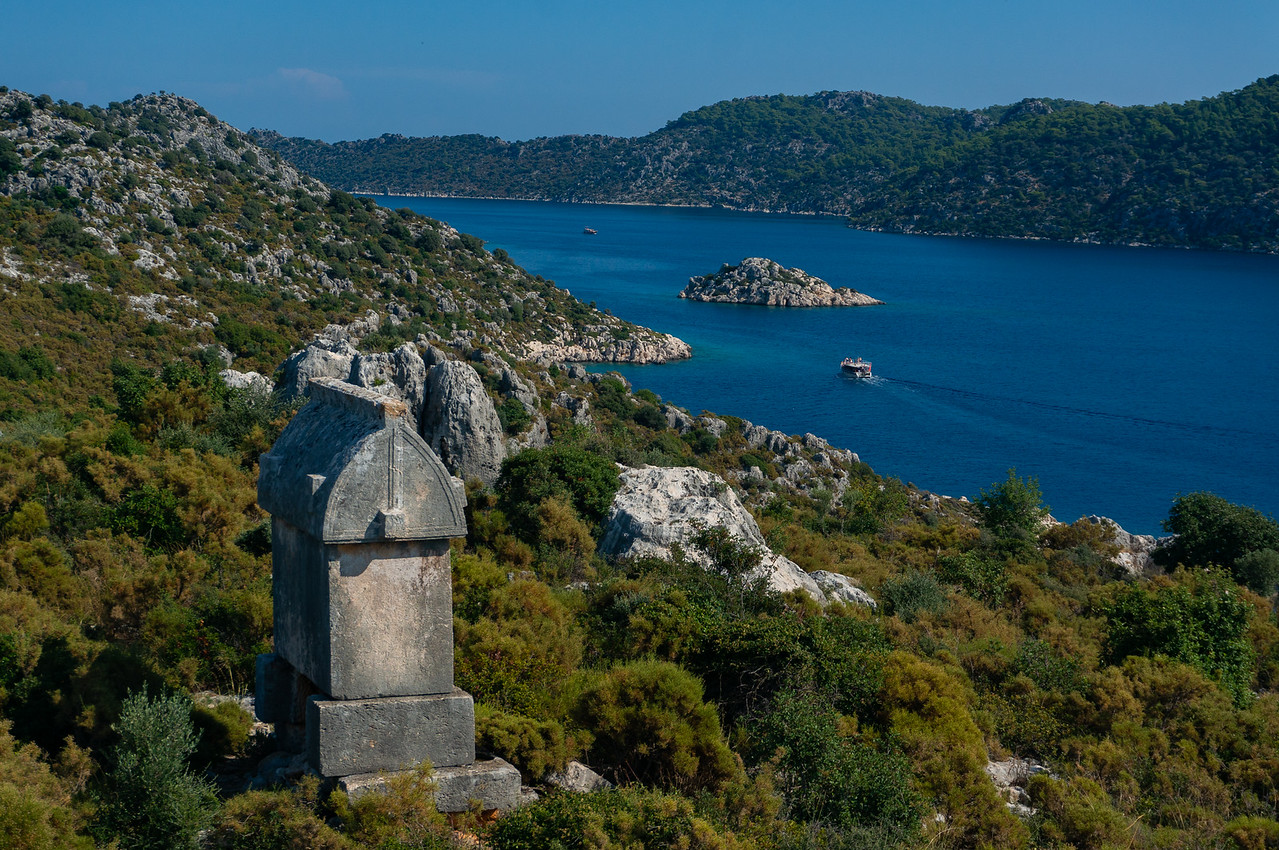 Нас відвезуть в мальовничу бухту Аперлае, де свого часу був великий порт. Як і сусідня Сімена, він здорово затонув, і цілі квартали опинилися під водою. Порт жив виловом молюсків, з яких добували цінну пурпурову фарбу. Оглянемо майже зруйнований форт і некрополь, з якого виходять впізнавані фотографії з походу по Лікійській стежці. На ніч перейдемо в сусідню бухту з комфортабельним кемпінгом (гарячий душ, електрика).