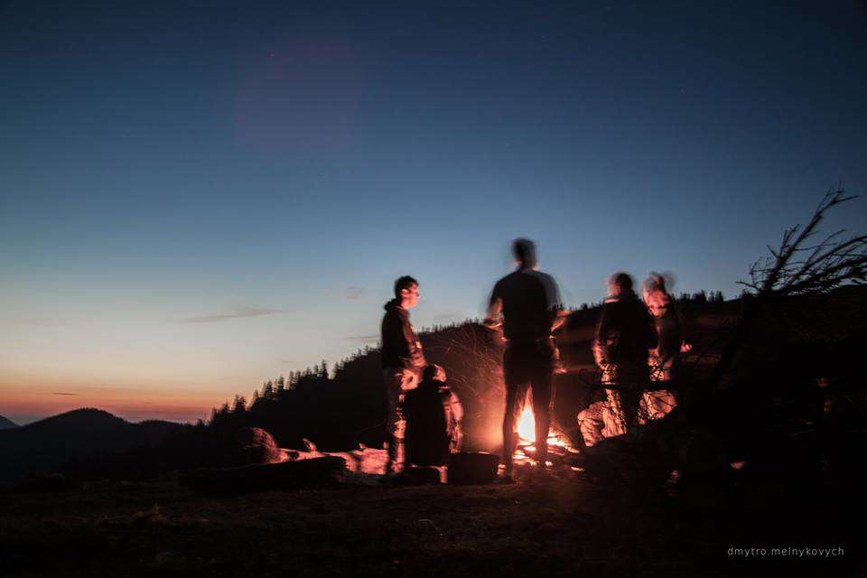 Повертаємось на Лисичу розводити багаття, готувати вечерю, слухати байки про Карпати та милуватися заходом сонця над горами.