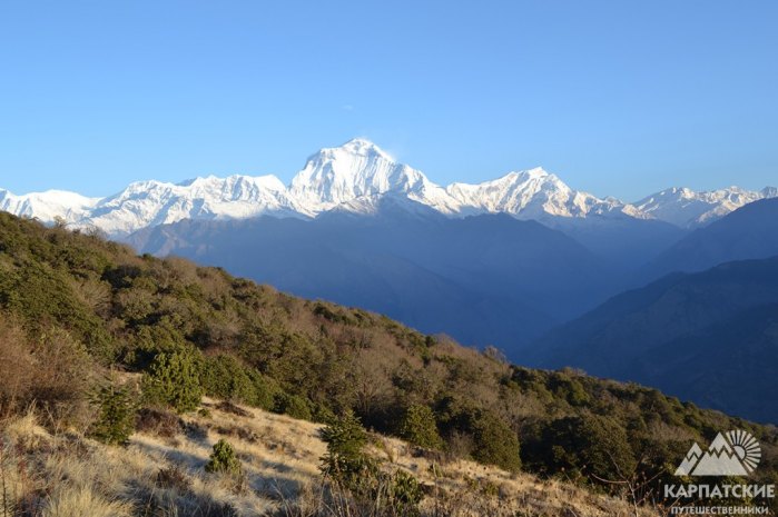Прокидаємося о 4 ранку і, взявши налобні ліхтарики, починаємо нічне сходження на Пун-Хілл (Poon Hill). Підйом на висоту 3200 метрів займе 30-40 хвилин. Тут, на вершині Пун-Хілл, ми зустрінемо приголомшливий світанок. Він запам’ятається нам на все життя: гірські хребти Аннапурни і Дгаулахірі в перших променях сонця, а в глибоких гірських долинах все ще панує оксамитовий морок … Повертаємося в лодж, снідаємо і продовжуємо трек до базового табору Аннапурни.