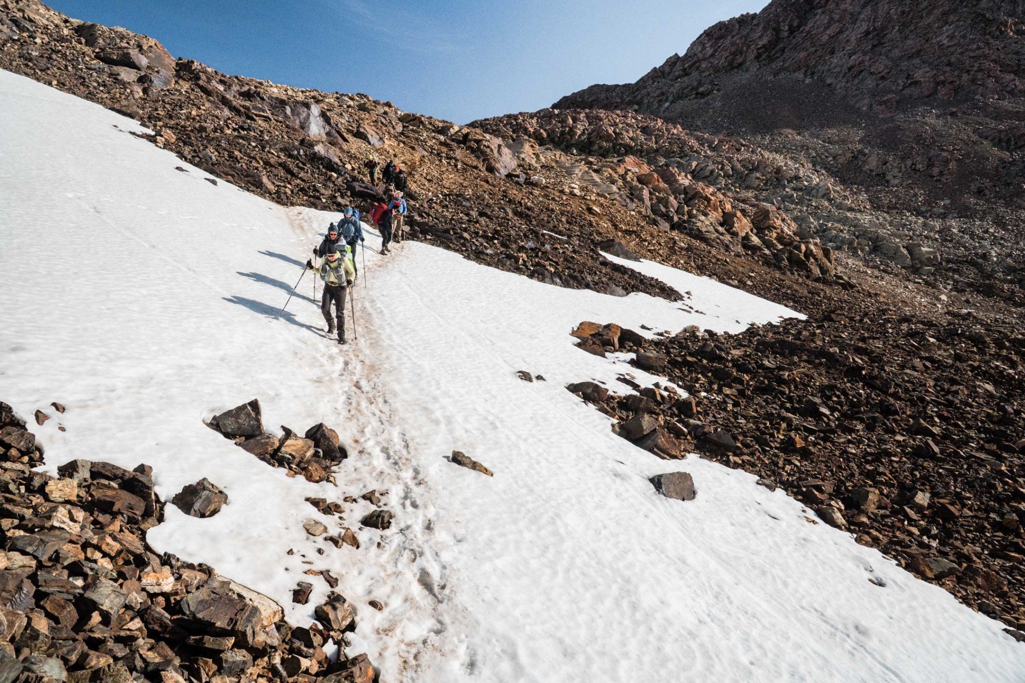 Сьогодні на нас чекає завершальний і найскладніший етап маршруту. Від табору підніматимемось до перевалу Вірхінія — найвищої точки всього треку (850 м).