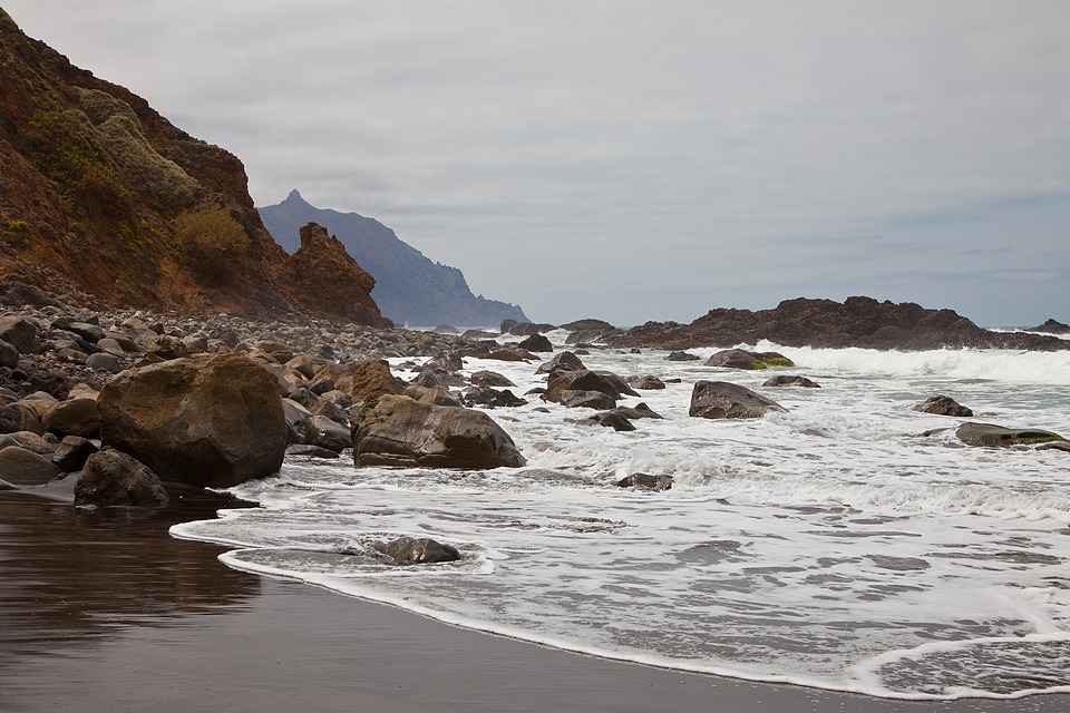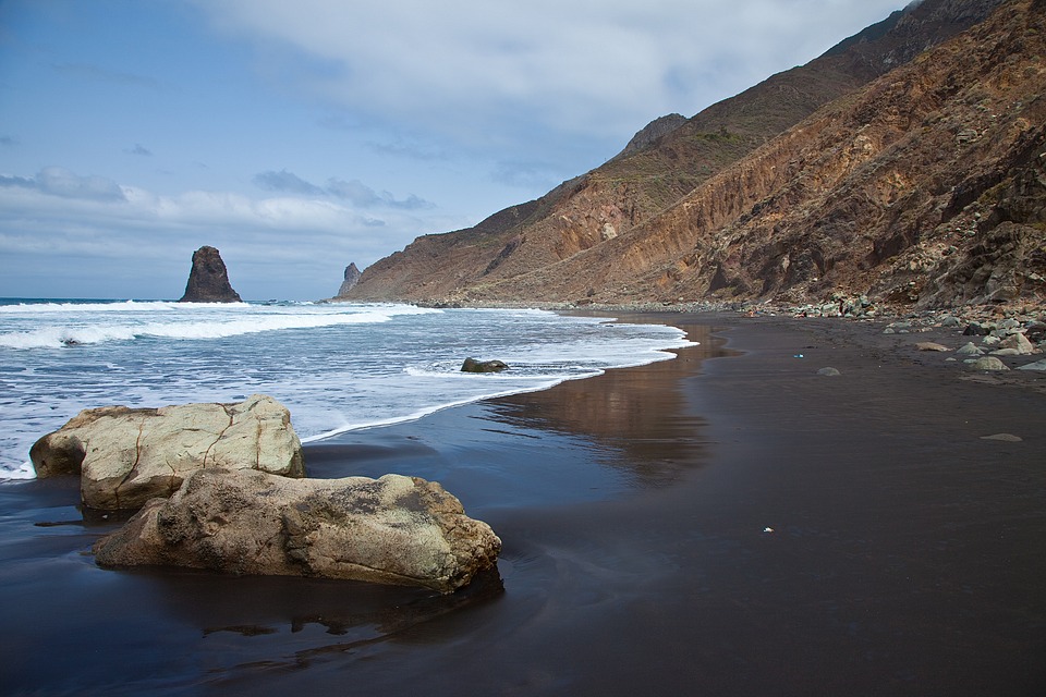 Спускаємося до океану і заглянемо на древній причал, витесаний прямо в скелі. Туди поміщається всього один човник рибалки, а навколо реве океан. У Альмасізі (Almaciga) можна буде скупатися і позасмагати. Особливість пляжу – чорний вулканічний пісок і скелі, що суворо здіймаються прямо з океану. Повертаємося до мікроавтобуса та їдемо в Санта-Крус відпочивати.