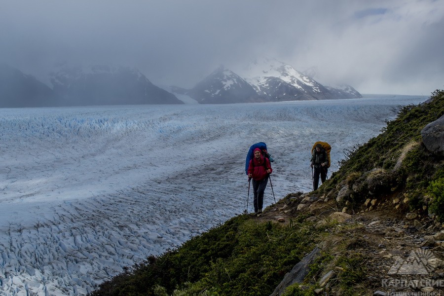 Якщо подивитися на знімки з космосу, Грей схожий на білого ведмедя, який прийшов до річки втамувати спрагу. Насправді він втрачає воду і швидко відступає. З 48 льодовиків Південної Патагонії всі, крім двох, зменшуються рекордними темпами. Приголомшливе видовище Грея вартує того, щоб витратити більше сил, ніж зазвичай. Можливо, тут все скоро зміниться. Спуск пройде звивистою стежкою в долину льодовика, там і поставимо наш табір.
